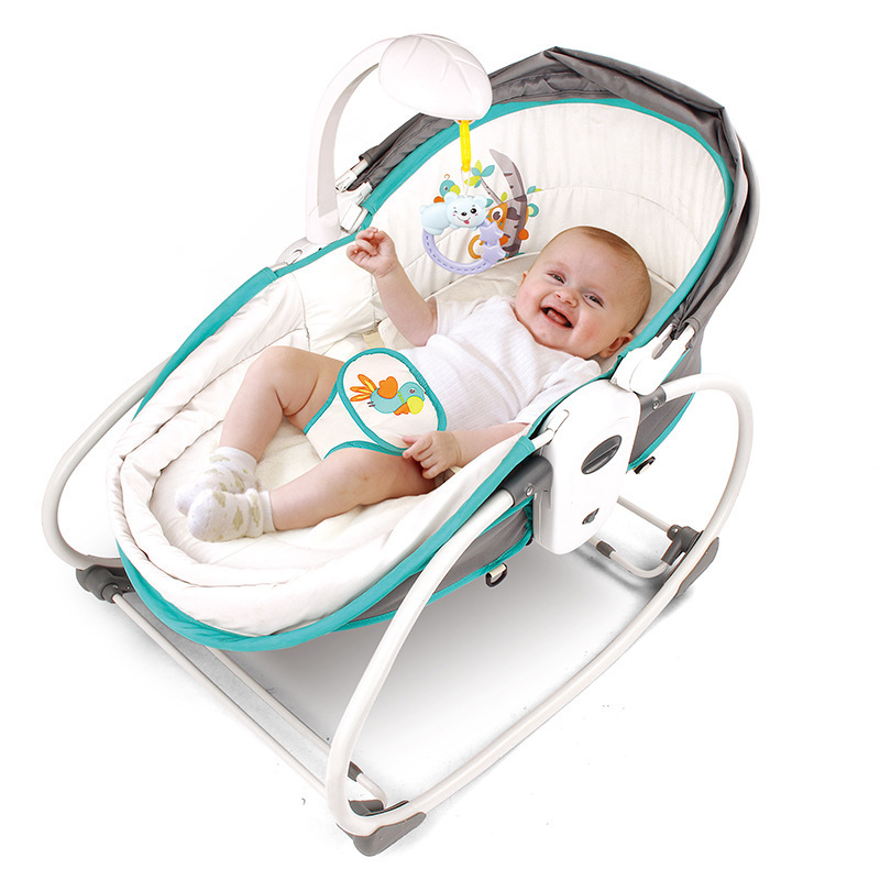 Музыкальный шезлонг качалка с вибрацией для новорожденного