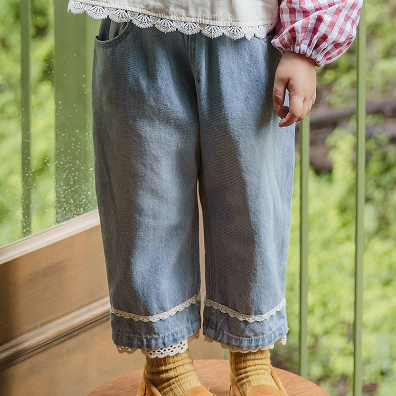 KQ202A-Light Blue Denim широко нога брюки