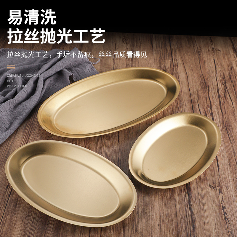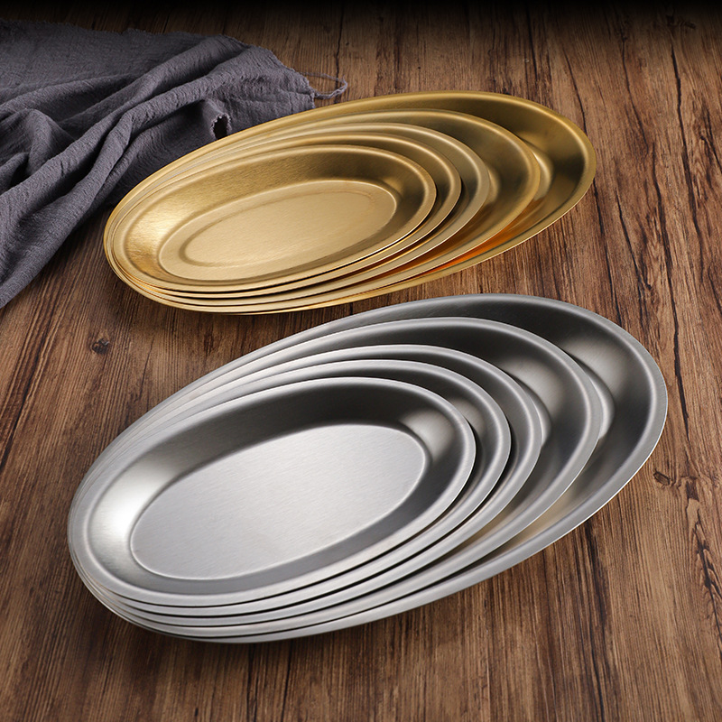 золотистая овальная тарелка