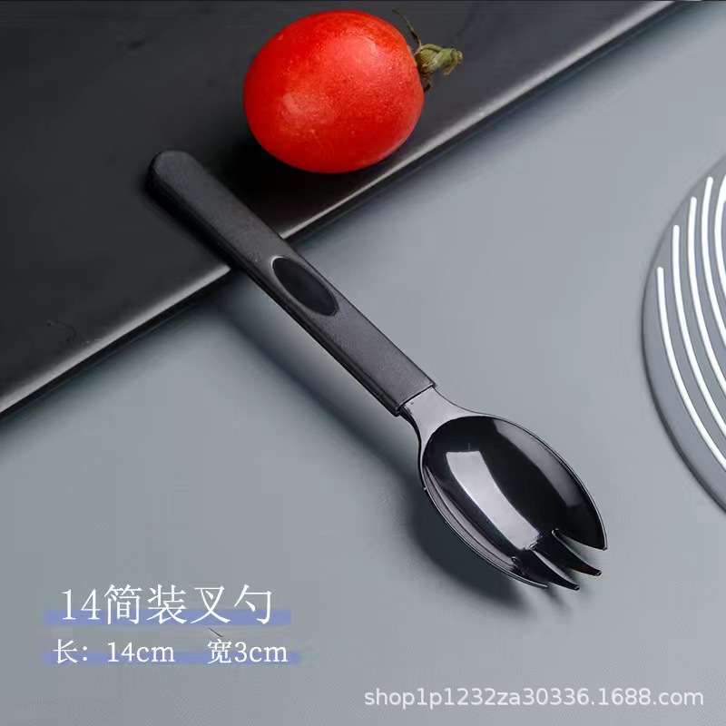 Простая установка (черная) 14 вилочных ложек и 100 филиалов (не печатный логотип)