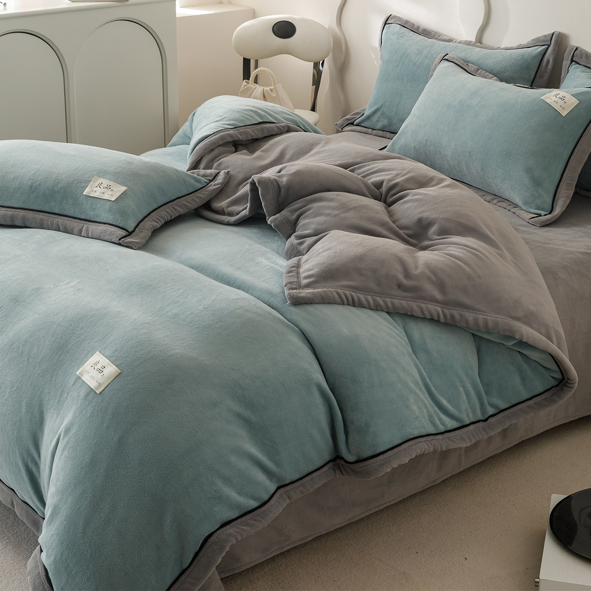 Простыня, комплект, пододеяльник, 1.8м, 4 предмета, 200×230см, 180×200см