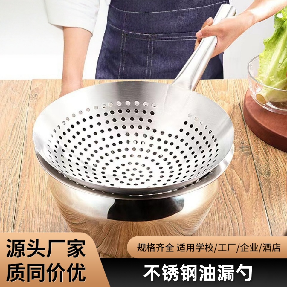 Дуршлаг для масла из нержавеющей стали, очень толстый фильтр, ложка для масла, коммерческая бытовая емкость для приправ, масляный барабан, кухонные принадлежности для шеф-повара, ложка для жарки