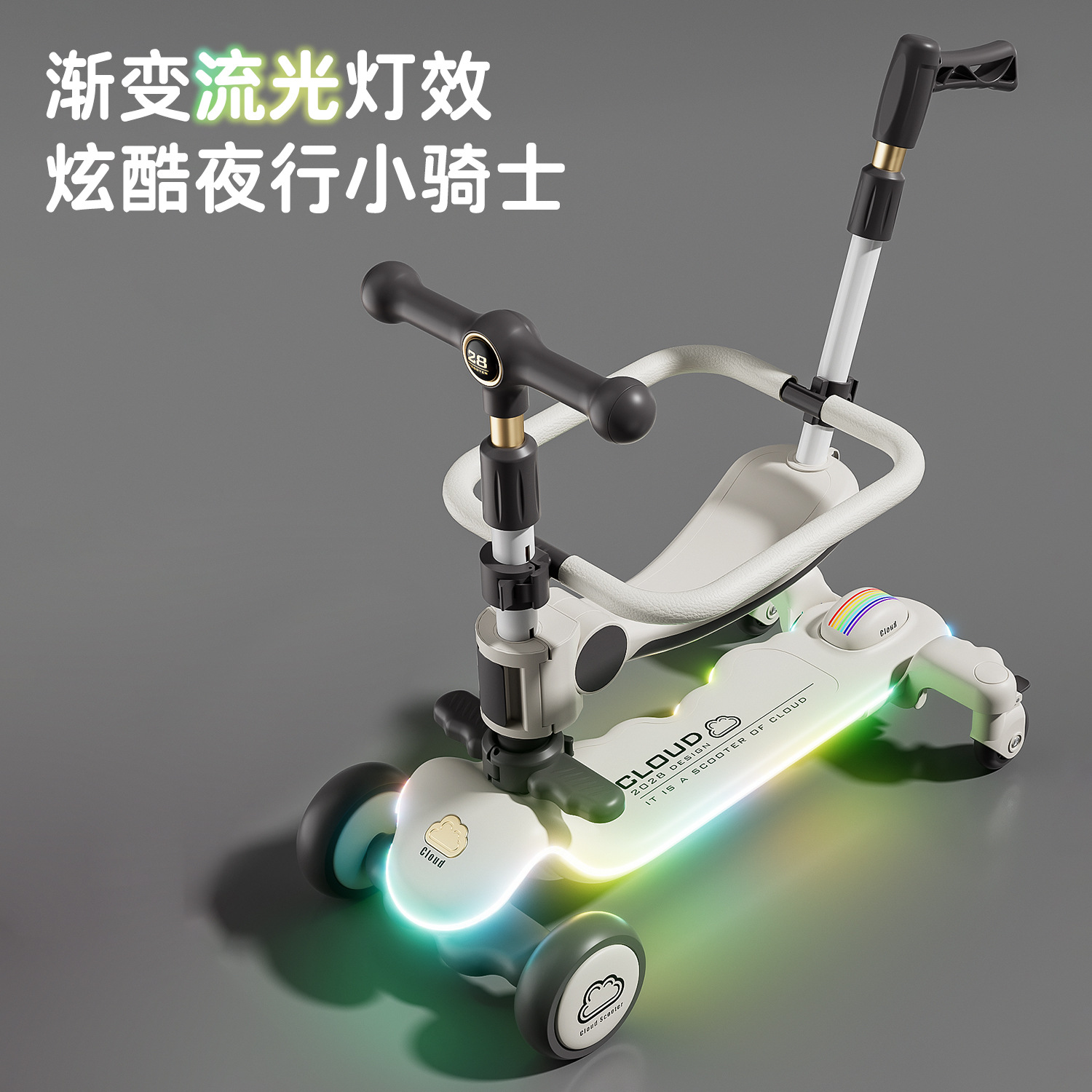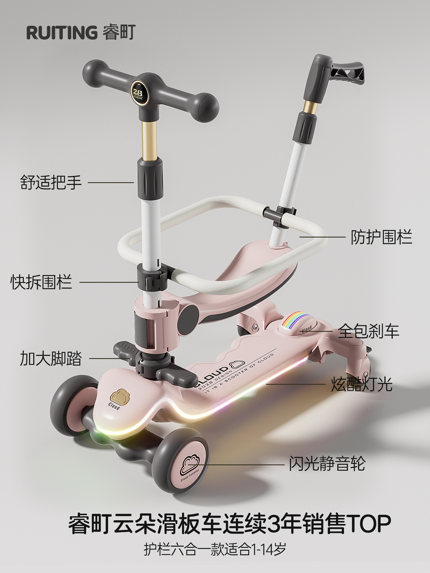 Роскошный фиолетовый + сиденье + увеличенное флеш-колесо + музыкальный шатер + забор + толкатель + подушка + навес для машины + грузоподъемность 300 фунтов