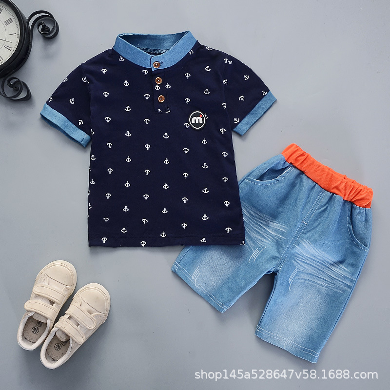 12QQH-Якорный чехол с короткими рукавами для мальчиков.Маленький M