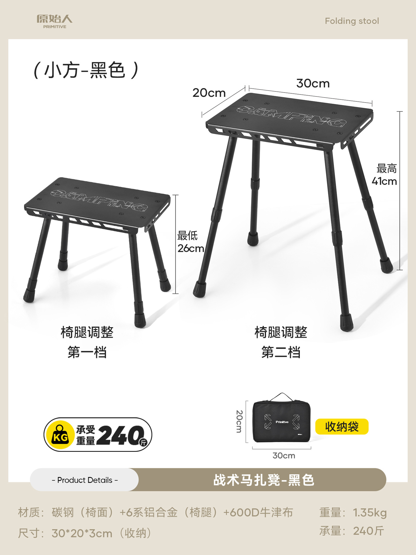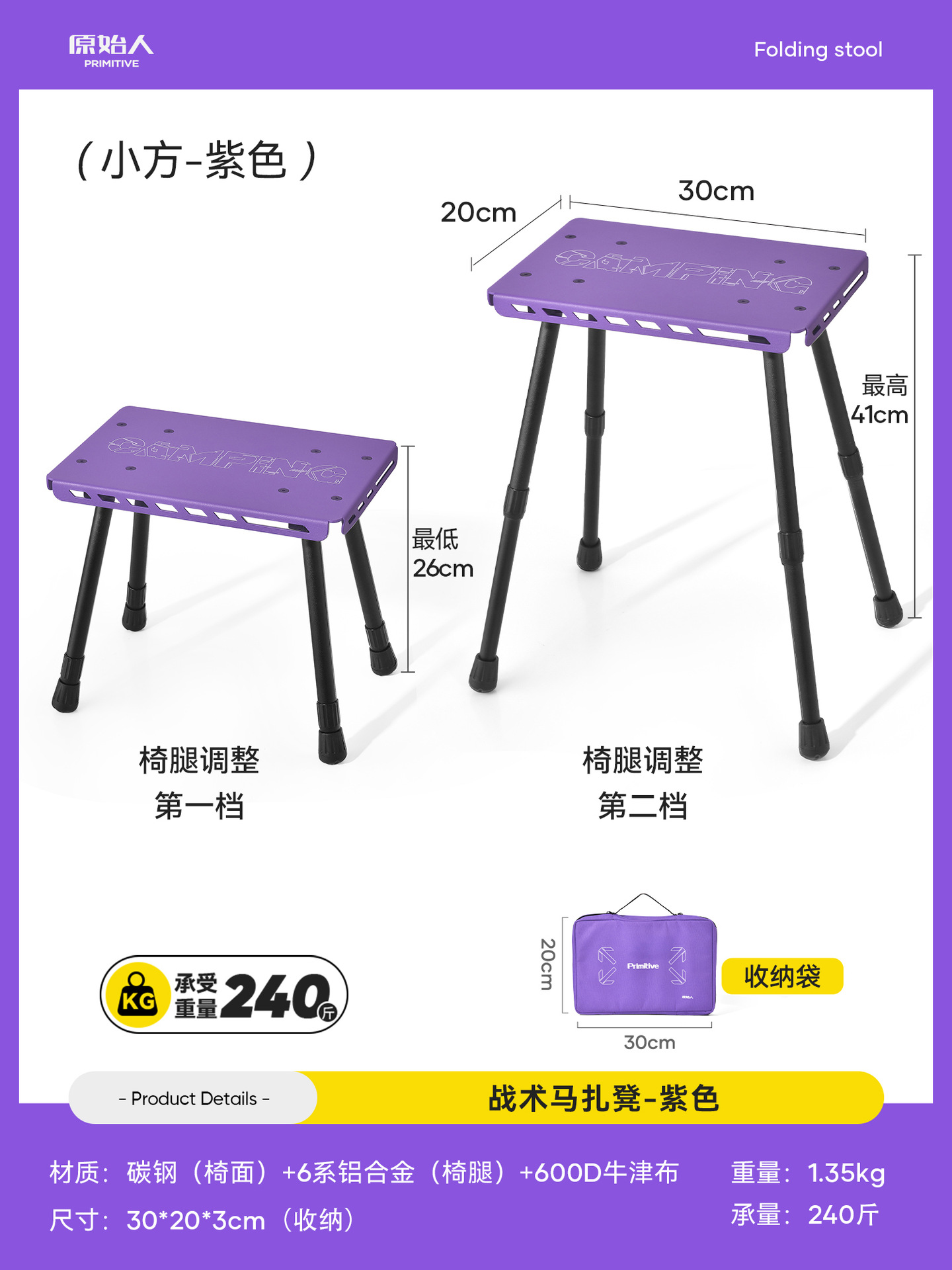 ~Яо Хей [Сверхлегкий и портативный, ножки стула можно поднимать и опускать] Мазар.